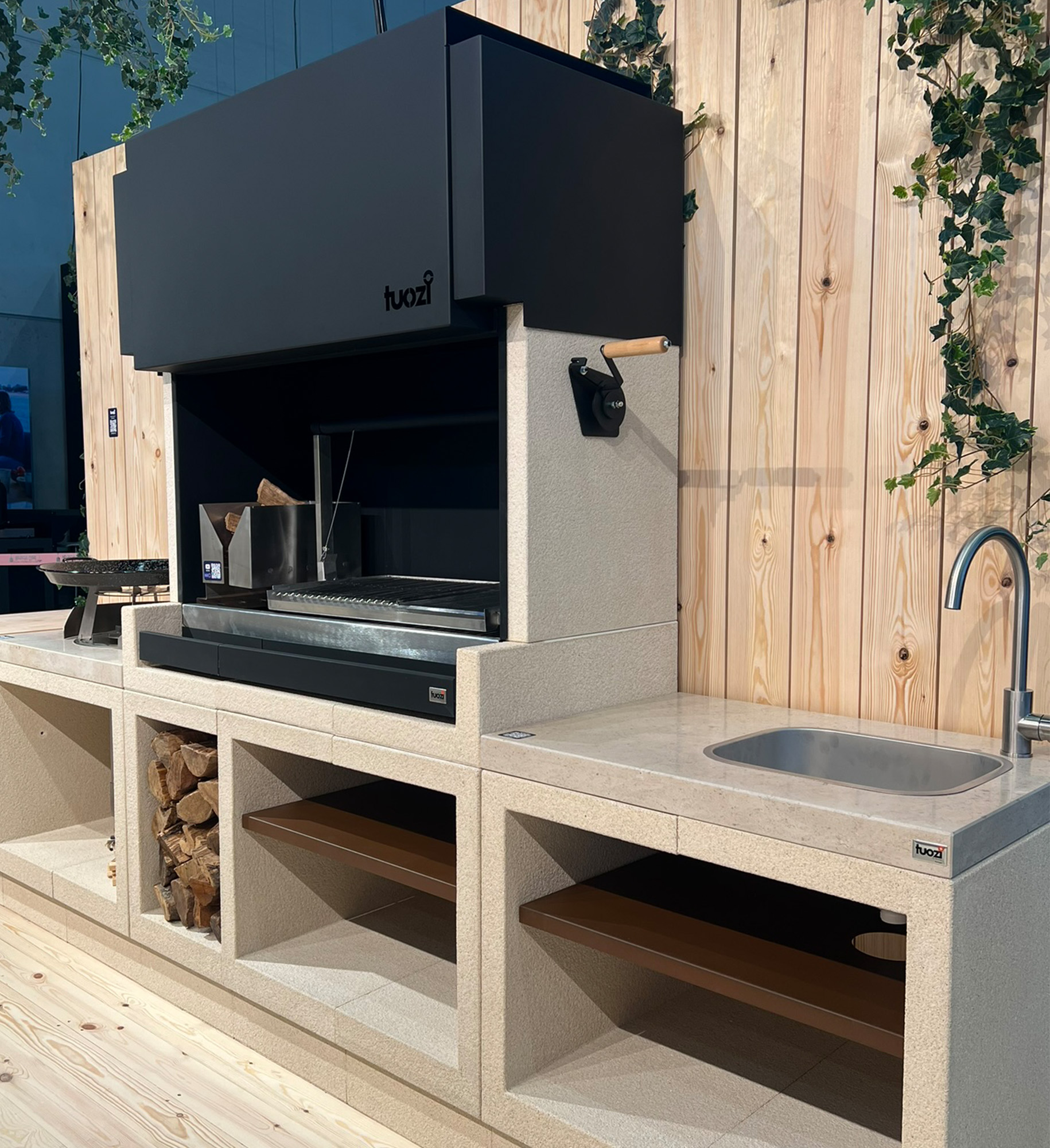 -Barbecue in beige deactivated concrete