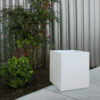 Smooth black and white concrete table and bench. Surface made of smooth black concrete finished with matte varnish.