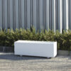 Tribeca bench, made of smooth concrete, resistant to atmospheric conditions. Finished with a mate varnish. Metal structure fi