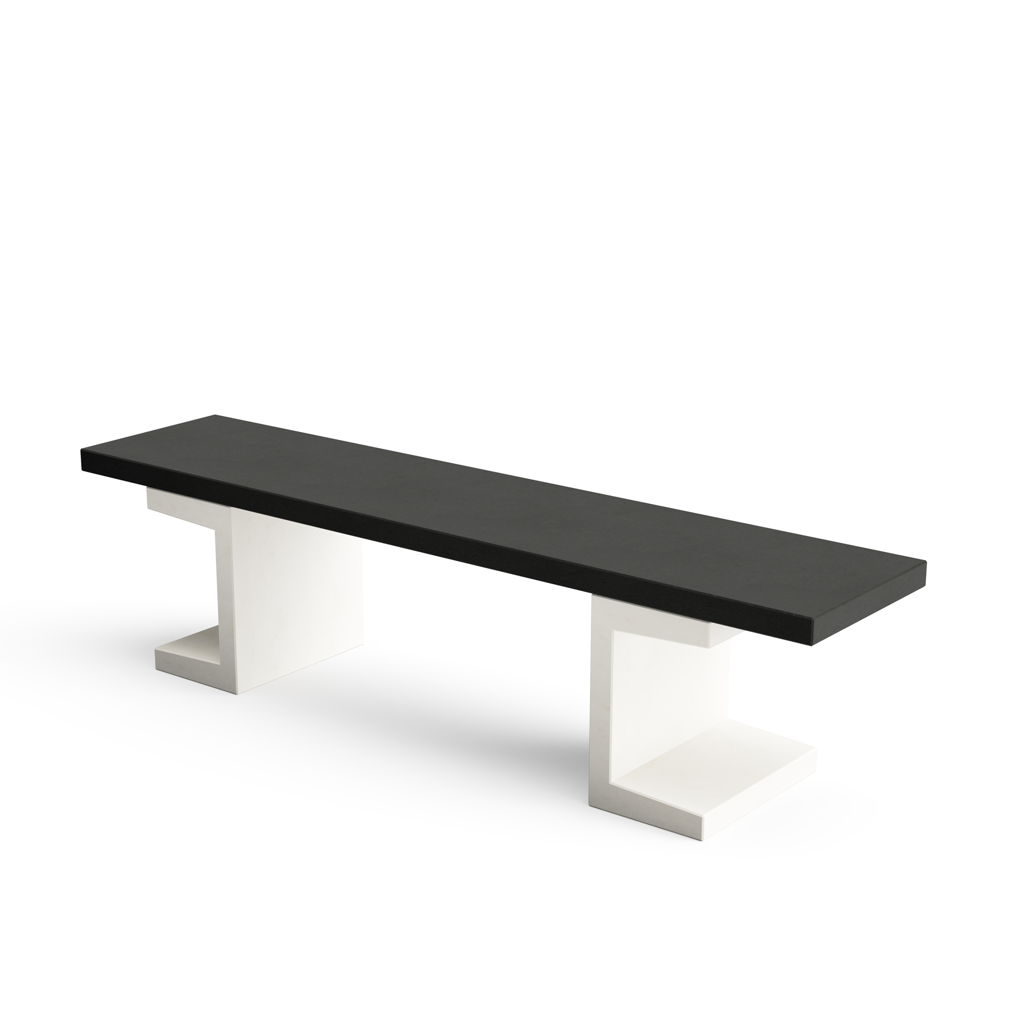 Smooth black and white concrete bench. Surface made of smooth black concrete finished with matte varnish.