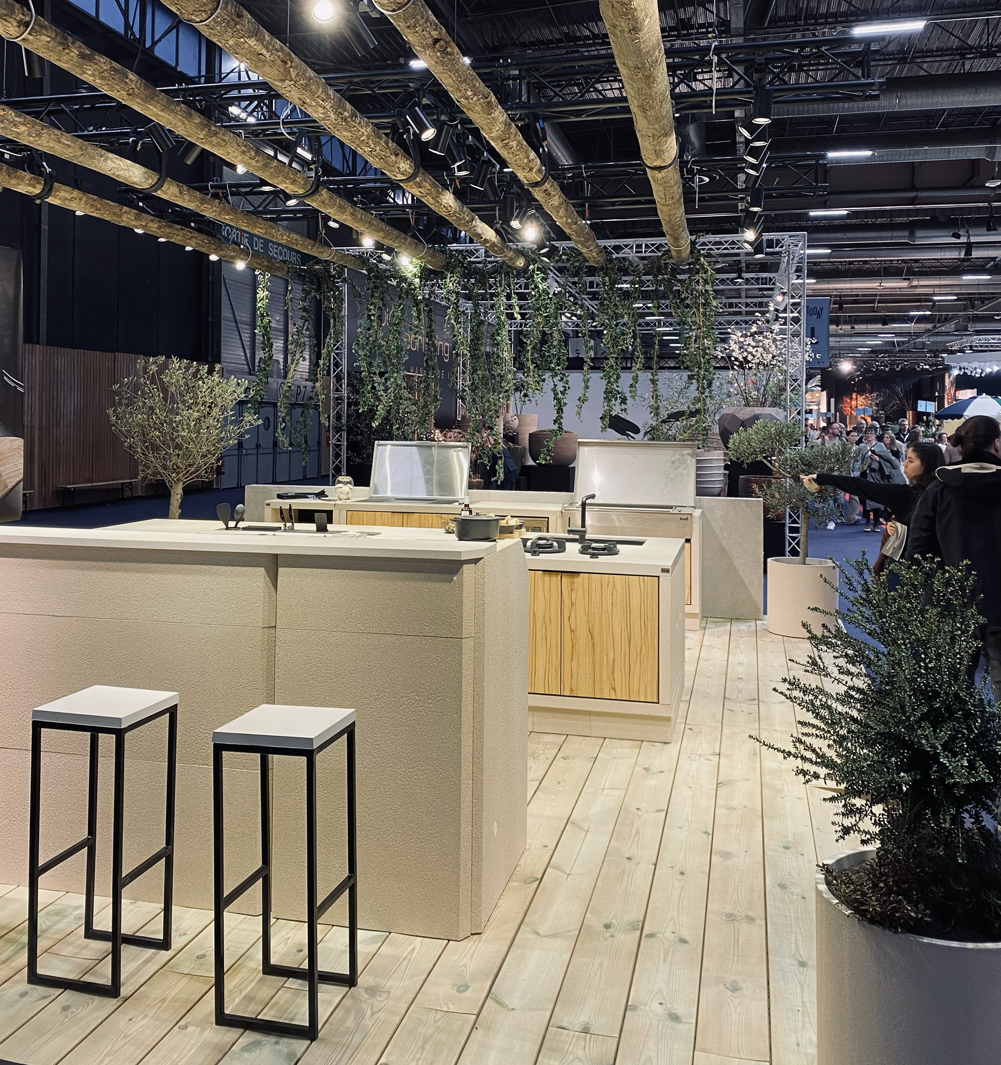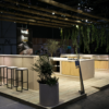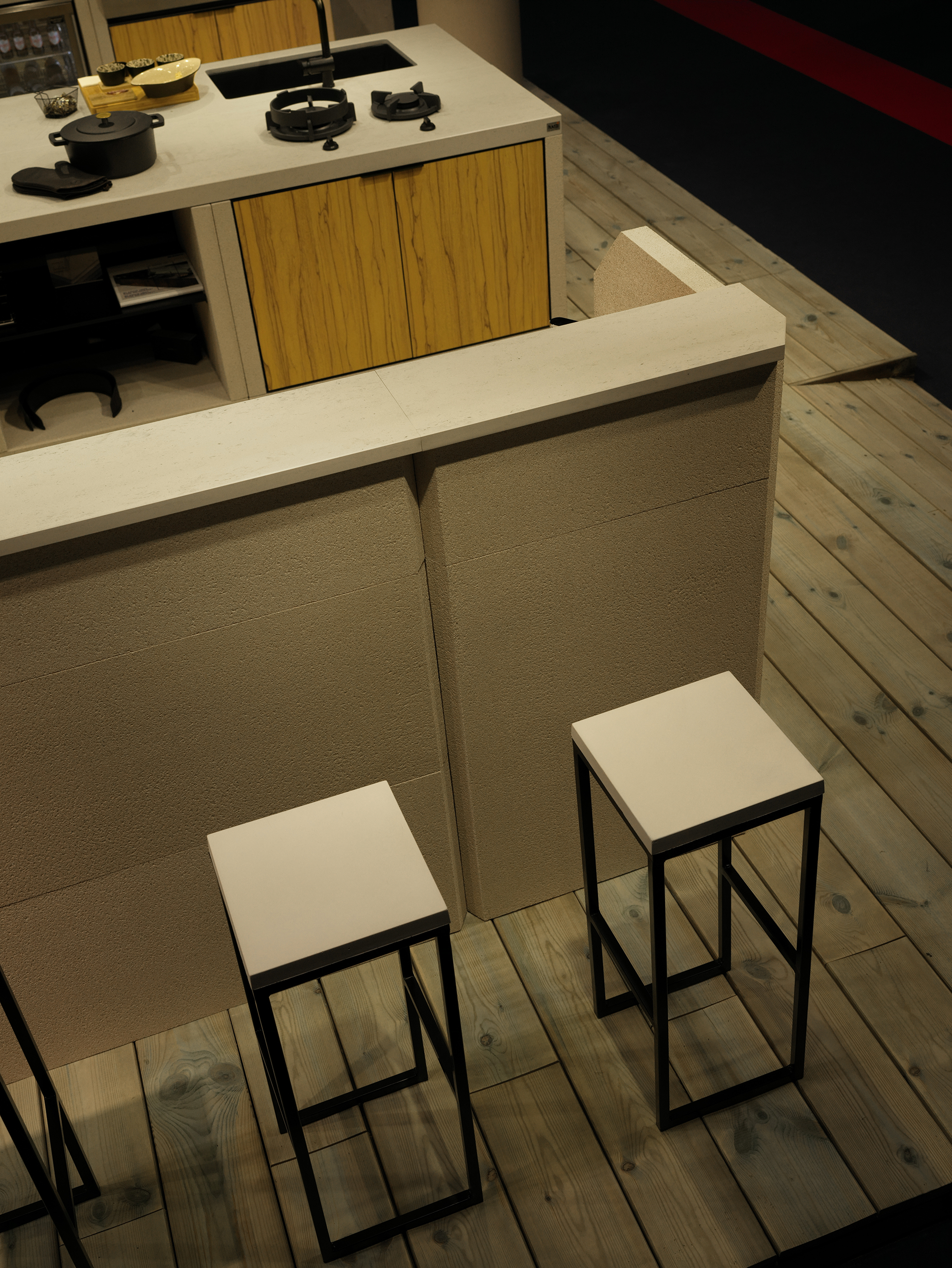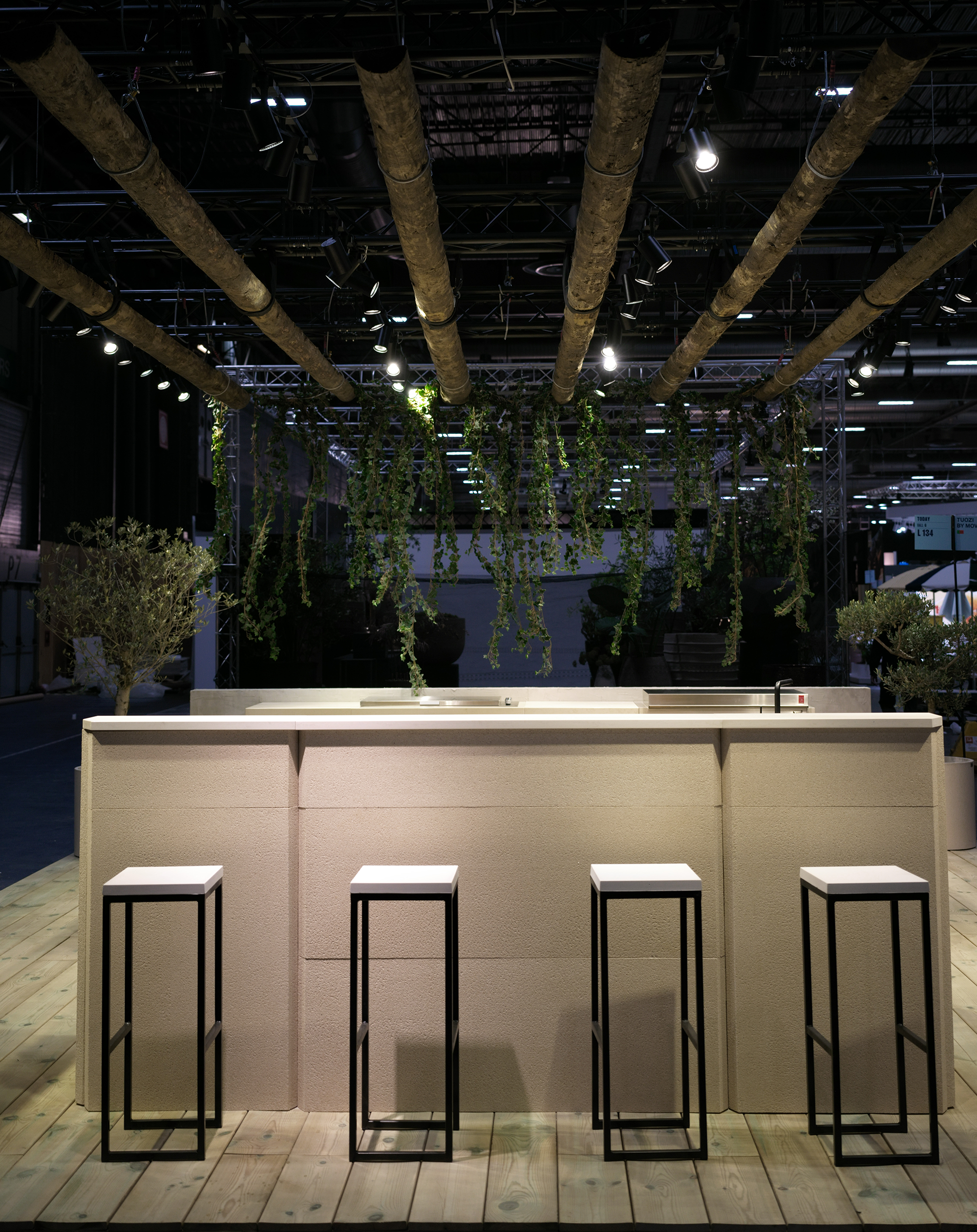 Tribeca bench, made of smooth concrete, resistant to atmospheric conditions. Finished with a mate varnish. Metal structure finished in black powder coating.