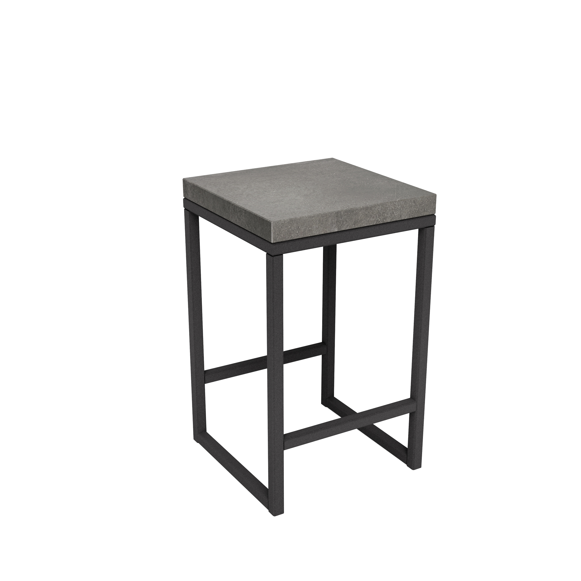 Tribeca bench, made of smooth concrete, resistant to atmospheric conditions. Finished with a mate varnish. Metal structure finished in black powder coating.